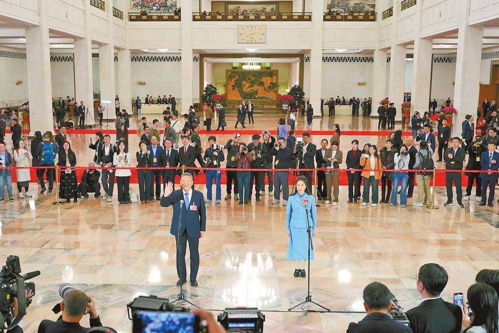 3月9日,第十四届天下东说念主民代表大会第四次会议第二场“代表通说念”蚁集采访行径在北京东说念主民大礼堂举行。新华社记者傅天摄