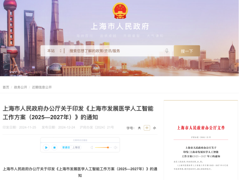 当天下昼,上海市东说念主民政府办公厅发布《上海市发展医学东说念主工智能职责决议(2025-2027年)》。其中提倡,围绕东说念主工智能泄露智能、强化学习等前沿规模加大连络布局,赈济在脑科学与脑机接口、猜度生物学等医学前沿规模的翻新探索。