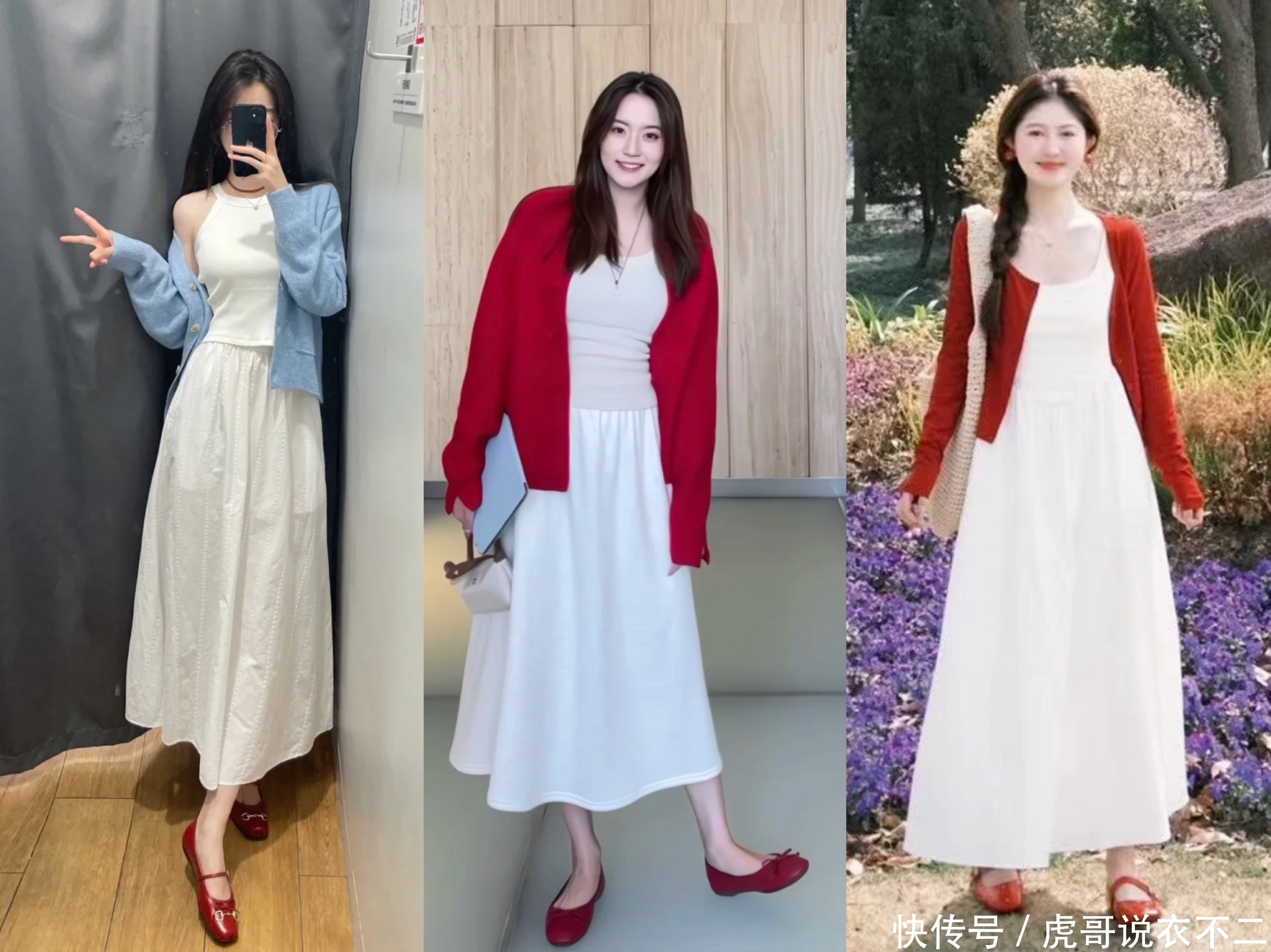 1. 白色裙子+芭蕾舞鞋
