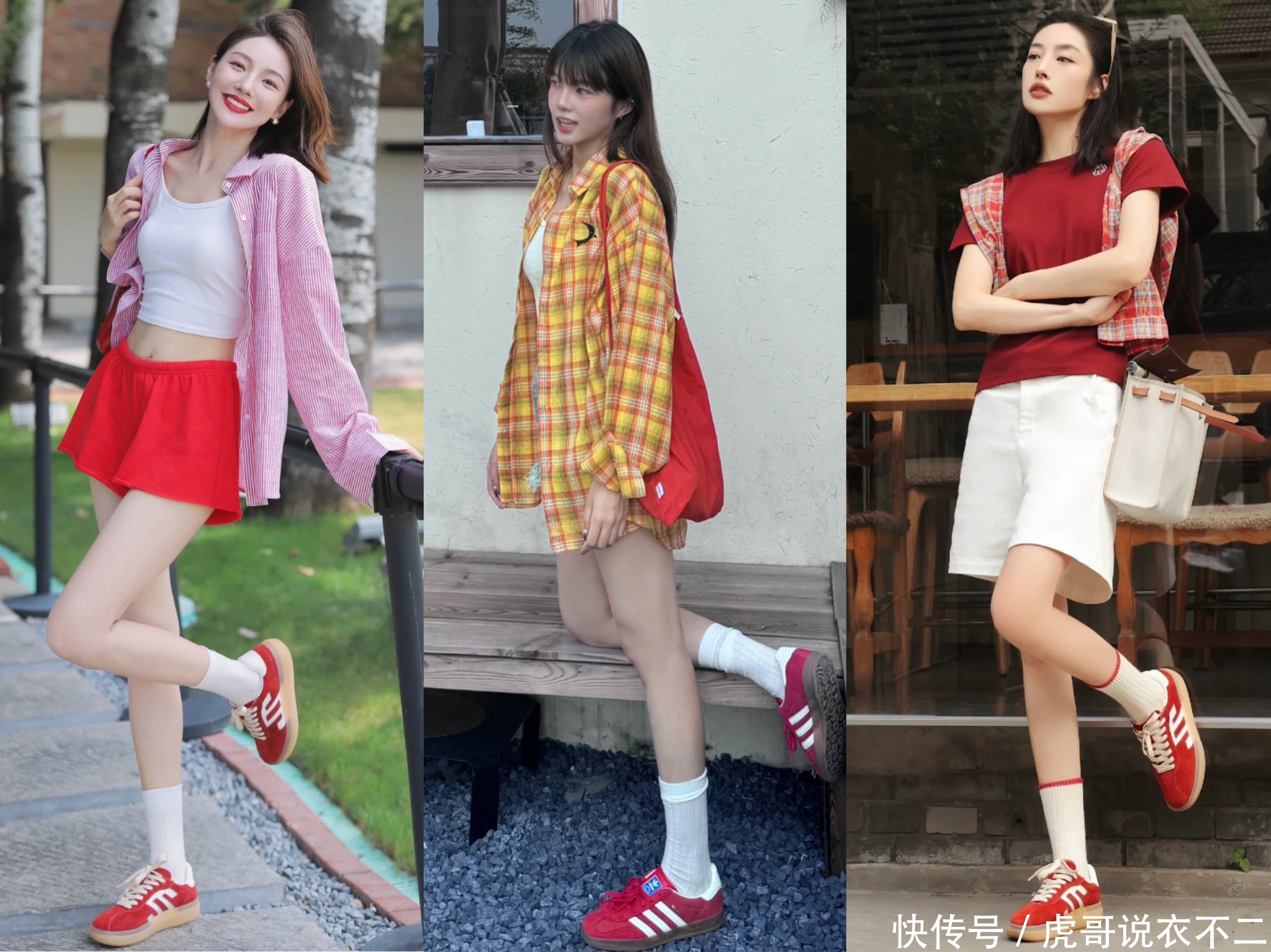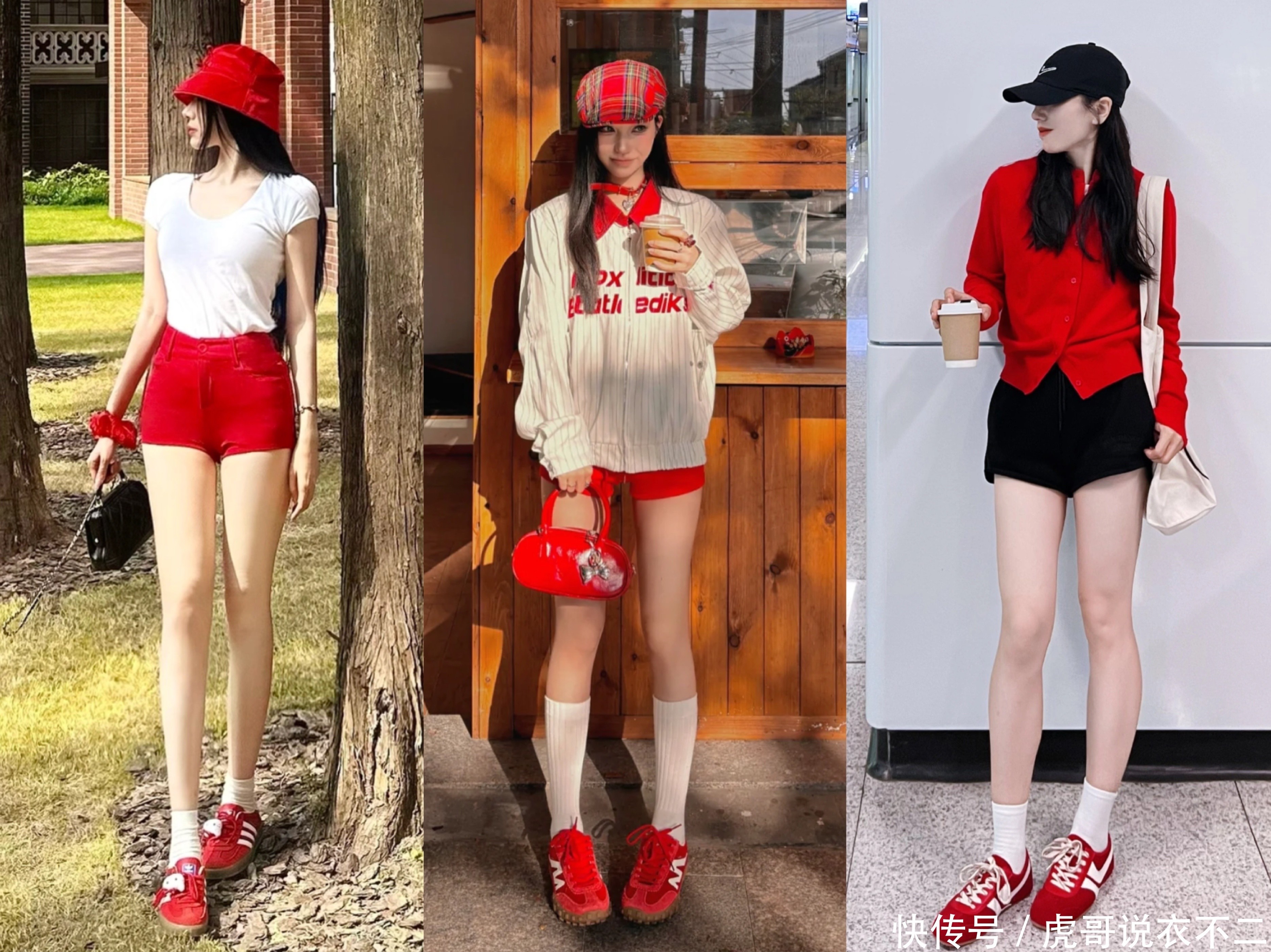 短裤或短裙与红色德训鞋的搭配,是初夏令节的绝佳聘任。它不仅省略展现出你的腿部线条,还能通过红色的加入,让全体造型愈加平定敬爱。