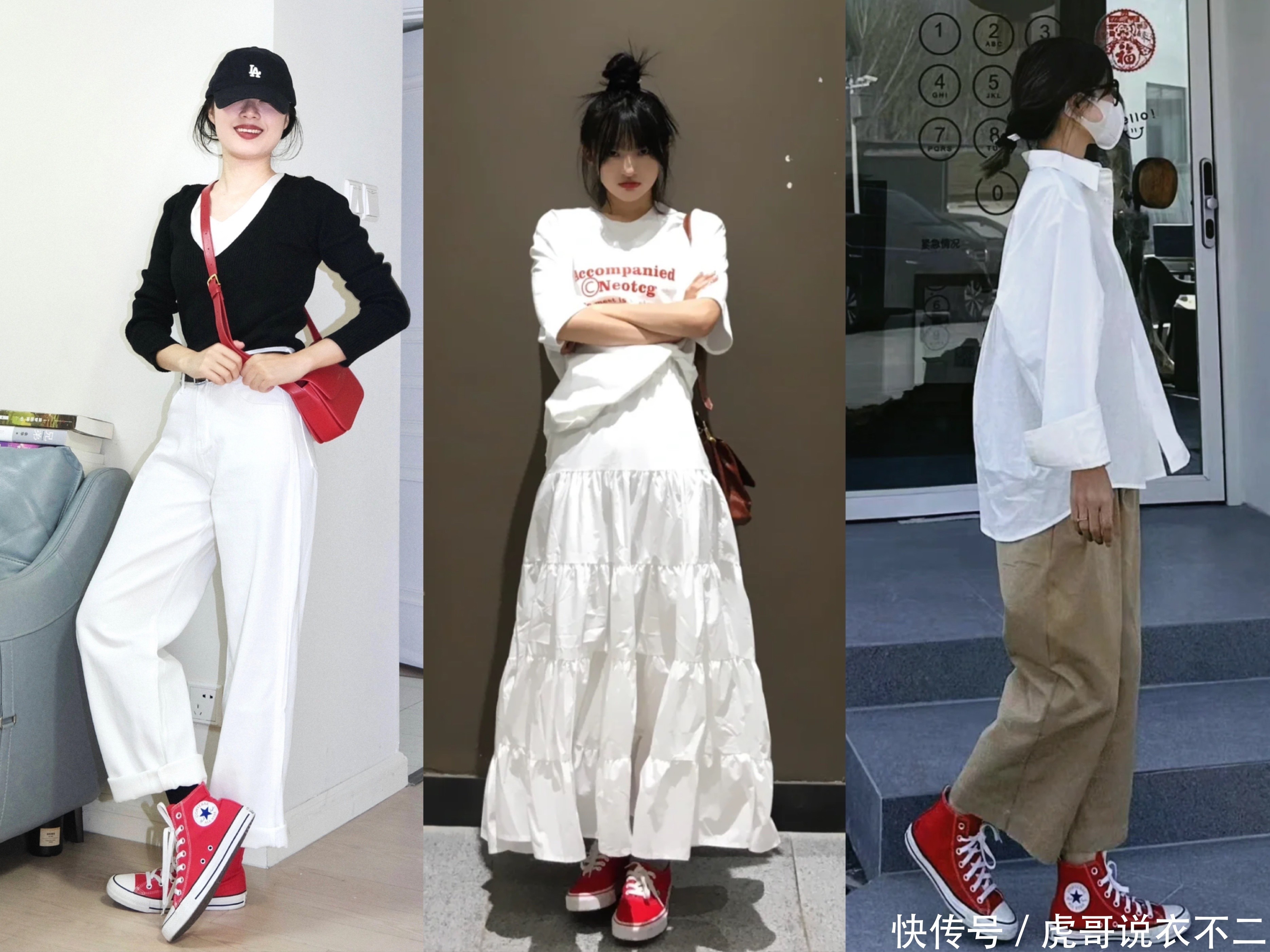 三、红色帆布鞋红色帆布鞋,以其百搭的特质和适意的衣裳体验,成为了初夏令节不能或缺的前锋单品。
