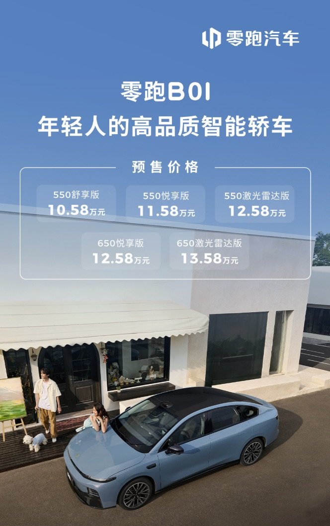 10.58 万元起,零跑 B01 开启预售