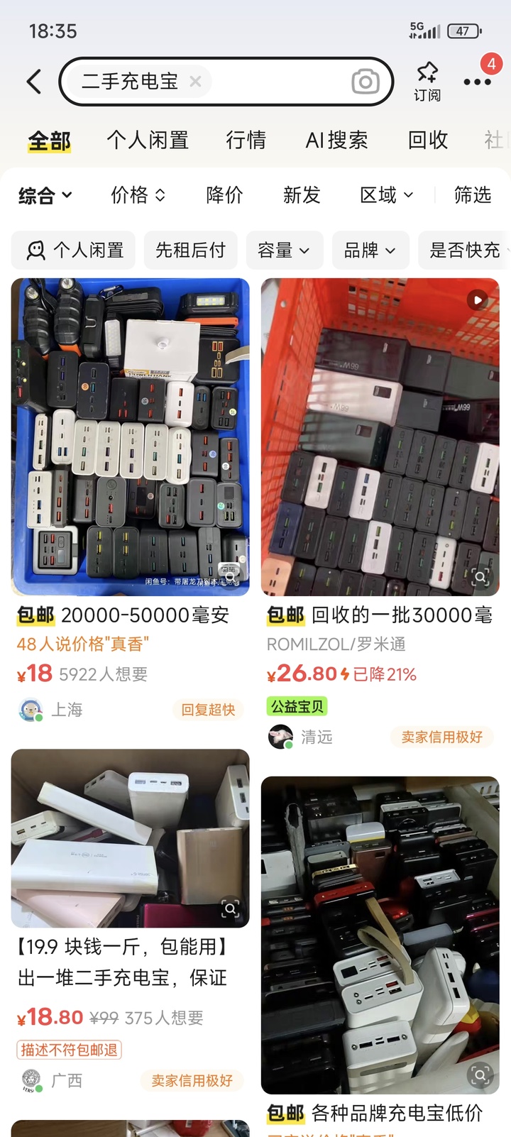 咱们骨子不雅察某二手平台发现,搜索「二手充电宝」等研究枢纽词后,平台会推送一多半疑似阻碍拘押的充电宝研究相接,售价从 19-50 元不等,何况多数以盲盒表情出售。